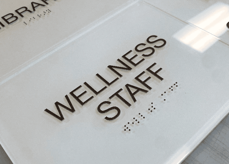 We produce everything in-house — dimensional lettering, ADA/Braille room signs, directories, wall graphics, regulatory signage, and large-scale interior branding elements — ensuring consistency in materials, colors, and finishes. Whether outfitting a medical campus, office building, senior living community, retail environment, or multi-tenant property, we deliver signage that is visually cohesive, durable, and fully ADA compliant.